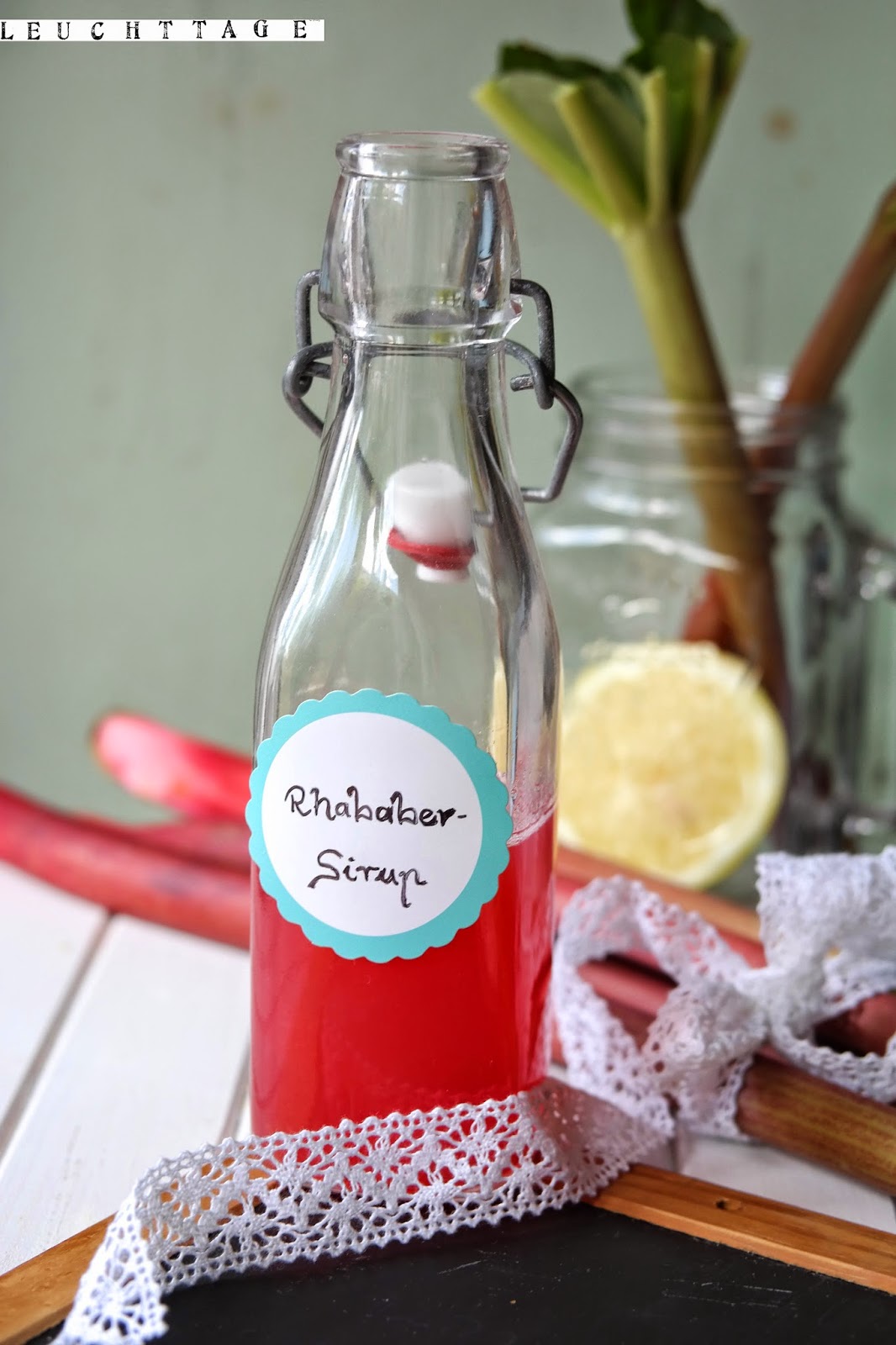 Der Rhabarbersirup schmeckt aufgegossen mit Mineralwasser oder Prosecco herrlich, gerne auch mit Zitronen und Minze im Glas- Sommer pur.