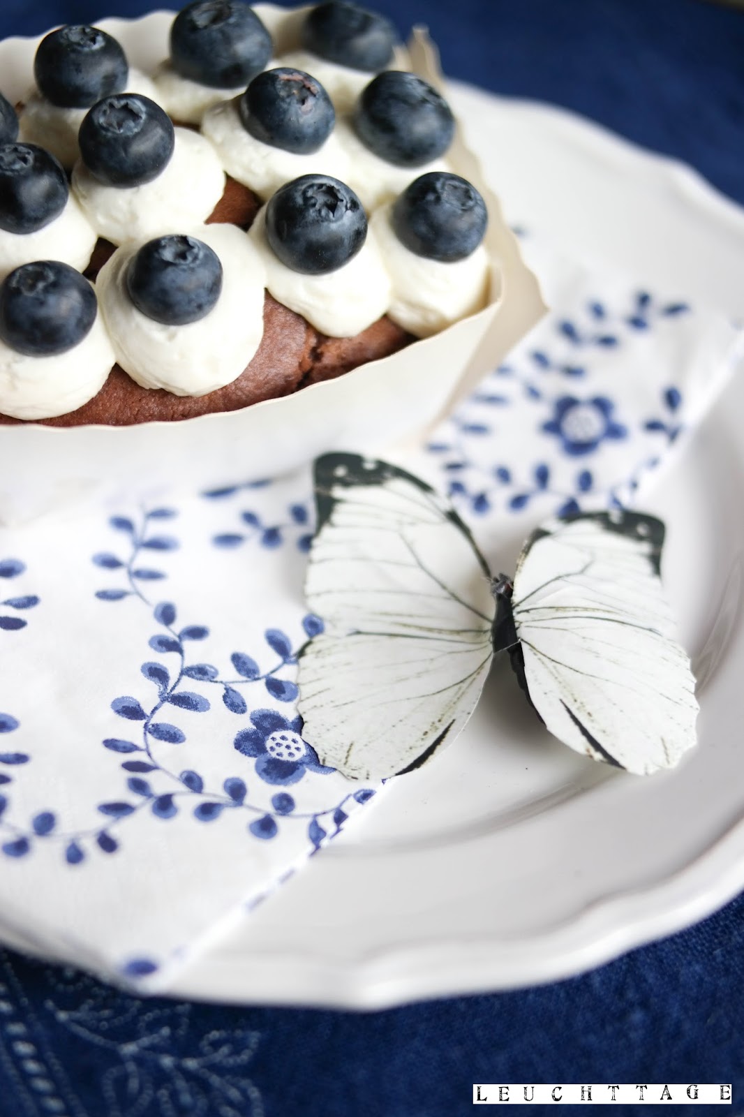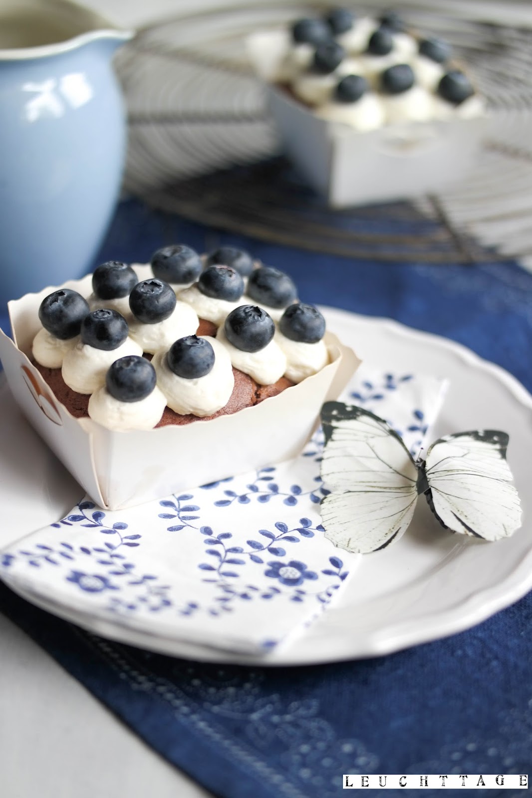 Draußen regnet es in Strömen und mir ist so richtig nach Einmummeln und Nichtstun zumute- im Herzen habe ich ganz viel Sonne und da stören mich so ein paar Tropfen doch nicht wirklich :-)- auch wenn es im Juni ziemlich unwirklich erscheint, so ein Regentag!! Schön, an solchen Tagen, dem Wetter zum Trotz, den Backlöfel zu schwingen, und einen dann leuchtende Heidelbeeren auf Schokoladenteig anstrahlen- hach!