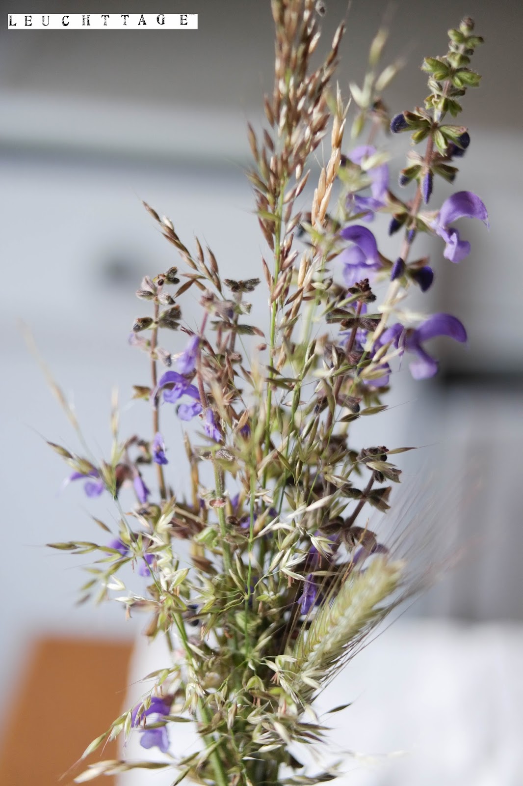 Wenn man jetzt wieder über die Wiesen streift, bei strahlendem Wetter natürlich, findet man sie wieder, Feldblumen in den schönsten Farben! Locker arrangiert in Gläser finde ich sie am schönsten …