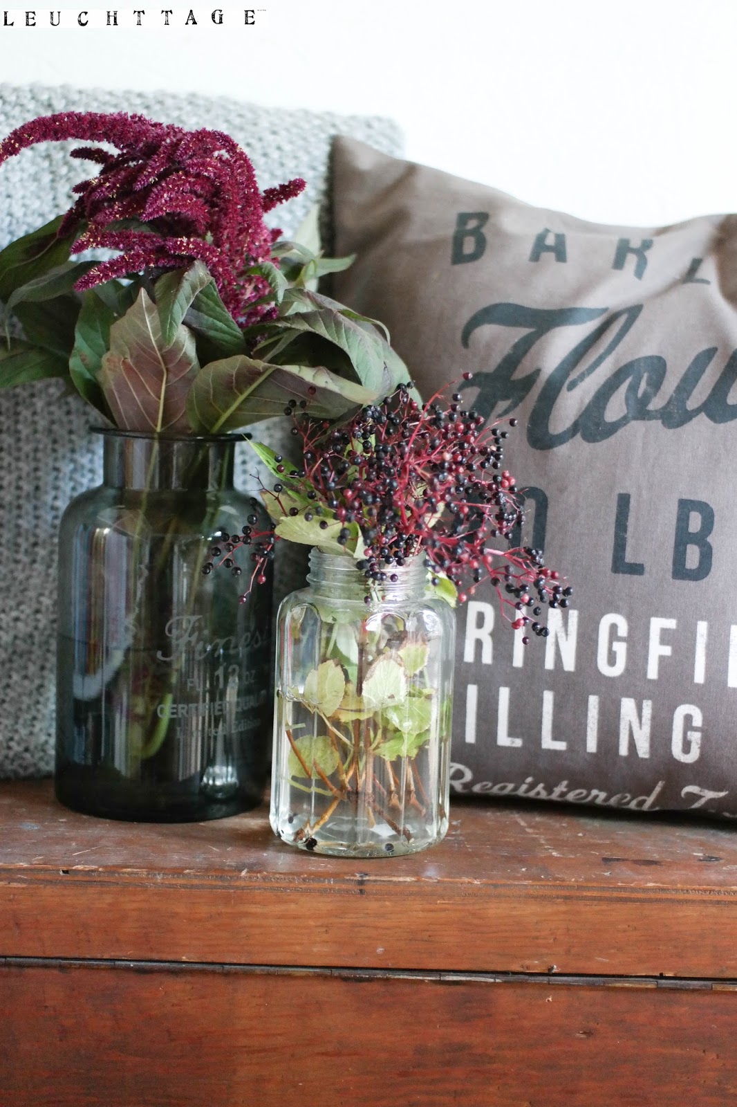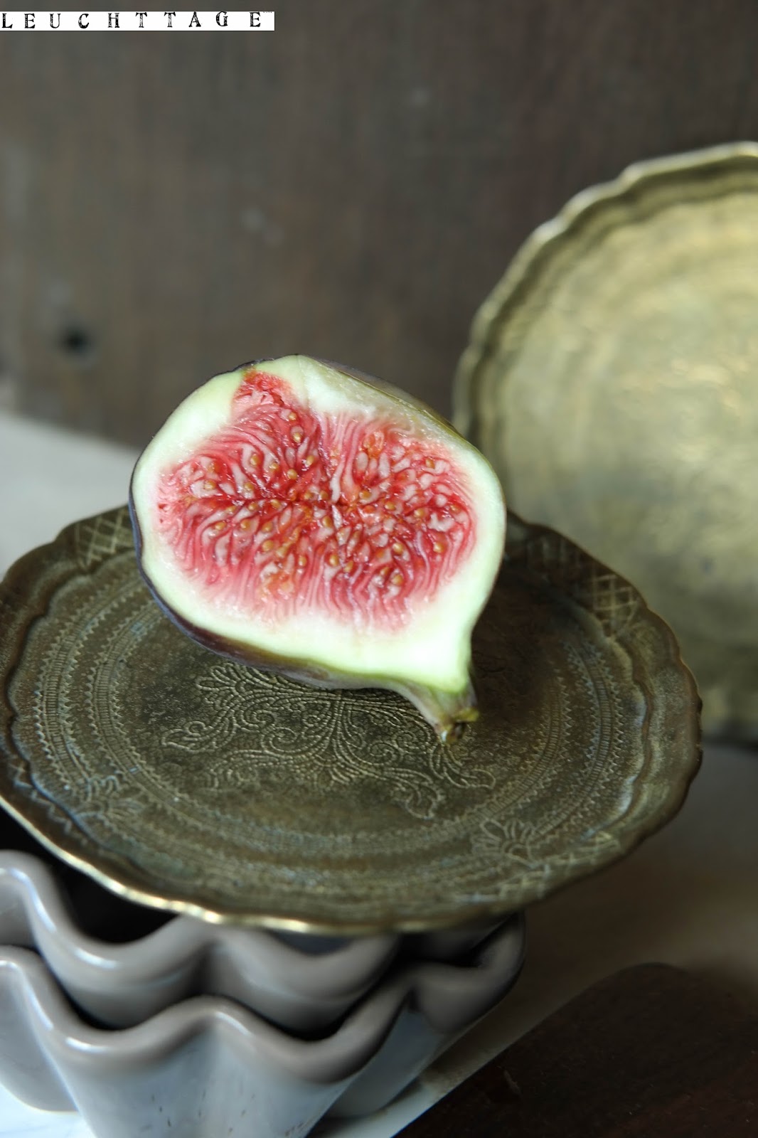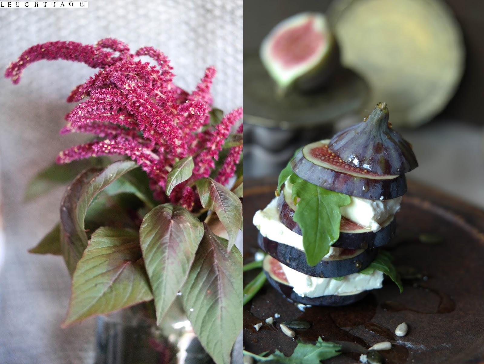 Aber in den Schlafphasen, da fahre ich dann zur Höchstform auf: in Windeseile wurden herbstliche Kissen ausgepackt, grüne Gläser aufgestellt, mit beerenfarbenen Pflanzen aus der Natür bestückt und kleine Feigentürmchen geschichtet- und das alles muss in dreißig Minuten laufen 🙂