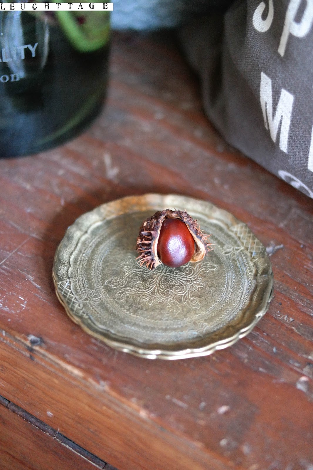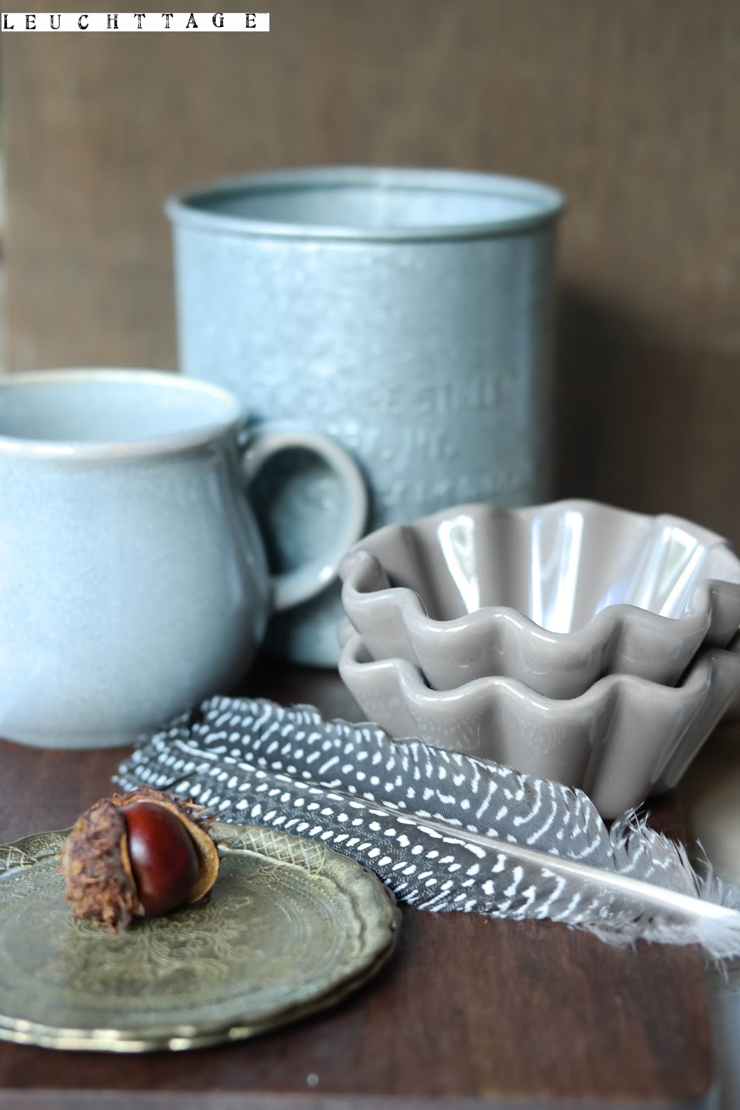 Im Herbst gibt es für mich nichts Schöneres als erdige Brauntöne, kombiniert mit kühlerem Grau und Keramik, unterstrichen von warmen Tönen wie Grün und die ganze Beerenfarbpalette darf auch noch auftrumphen. Naturmaterialien wie Kastanien und Federn bringen Natürlichkeit ins Spiel!