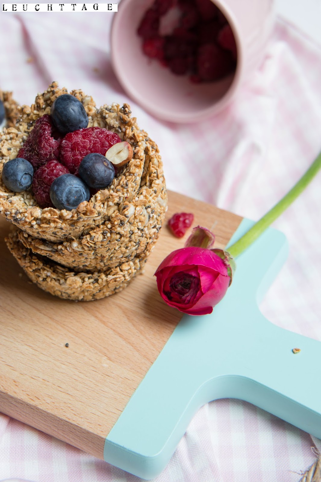 Das Tolle an den Müslicups- sie sind mit allem zu füllen, was euch schmeckt ( gut, ok, über herzhafte Füllungen lässt sich streiten) aber Joghurt und alle Früchte nach Wahl freuen sich tierisch auf ein kleines Bad im Müslikörbchen.