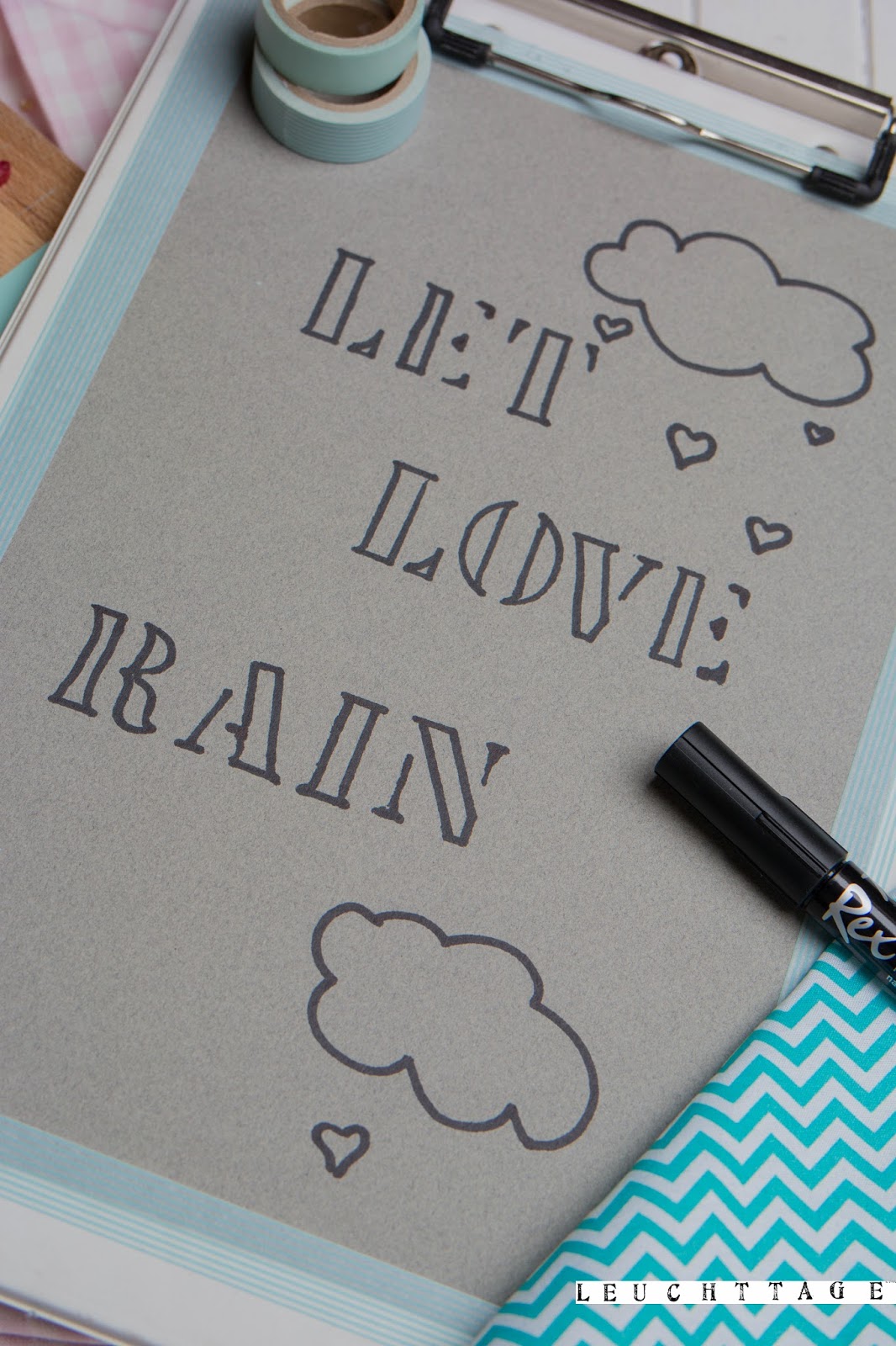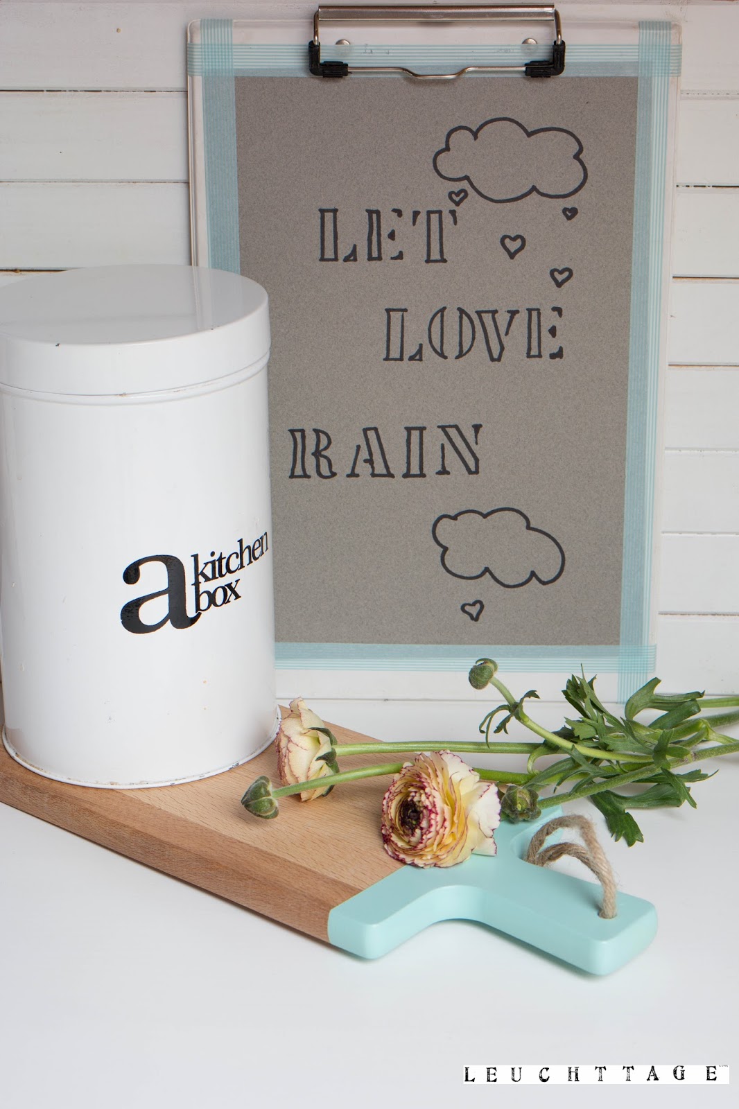 Das Papier mit alles Kleber auf dem Brett fixieren, an den Rändern einen schönen Rand aus Masking Tape kleben. Mit Hilfe einer Buchstabenschablone und dem Marker einen Spruch auf das Brett schablonieren- fertig !