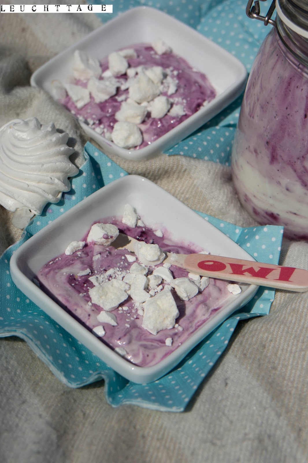 Zum Servieren je 2-3 Baiser pro Schälchen zerkrümeln und auf der Creme anrichten