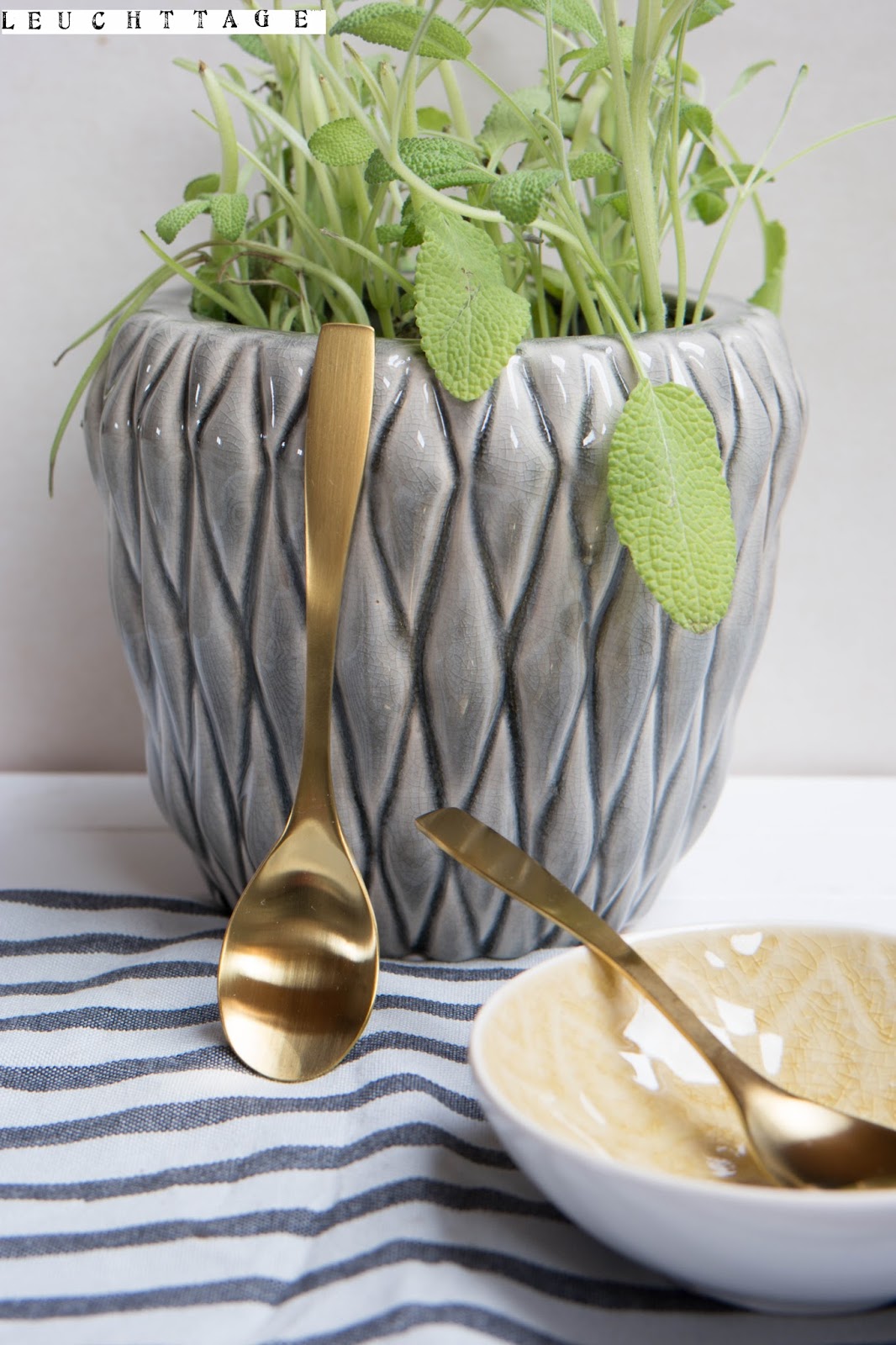 Und die goldenen Löffel, die ich schon bei einigen Blogs gesehen habe, sind endlich bei uns eingezogen und verleihen dem Tag gleich einen wunderschönen Goldrand , nicht ?