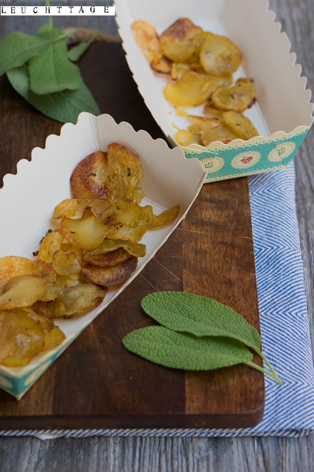 Bei 200° Ober/-Unterhitze ca. 40 – 50 Minuten rösten, dabei mehrmals wenden, damit die Chips auch knusprig werden.