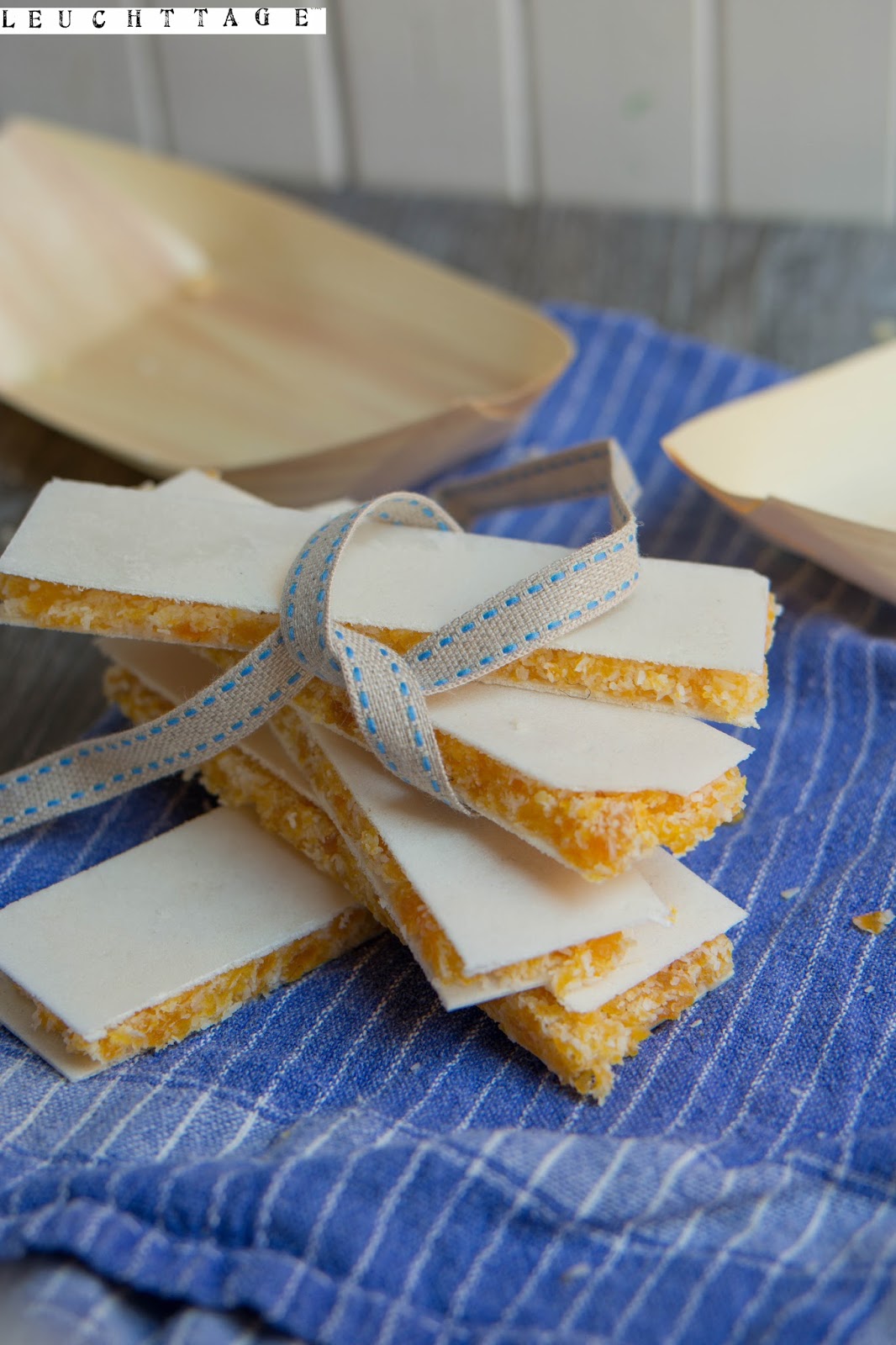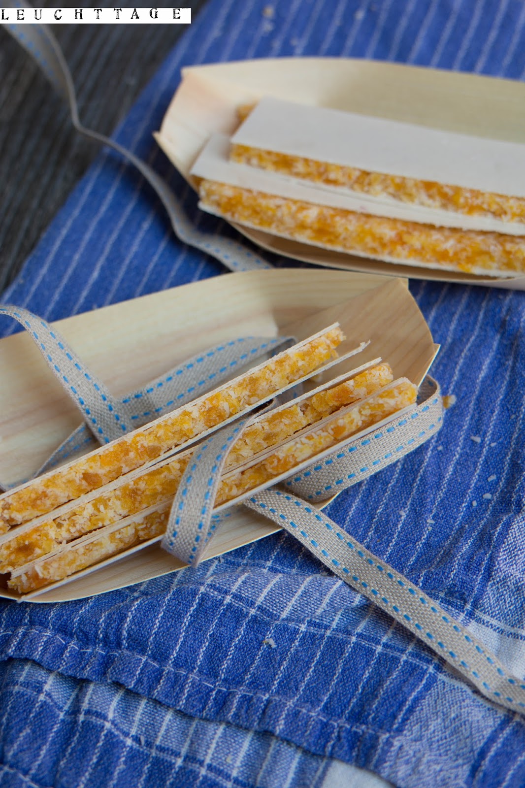 Sollte dies nicht der Fall sein, einfach die obere Oblate auf der Rückseite mit Honig einstreichen und erst dann auf die Fruchtmasse legen, so „klebt“ diese besser.