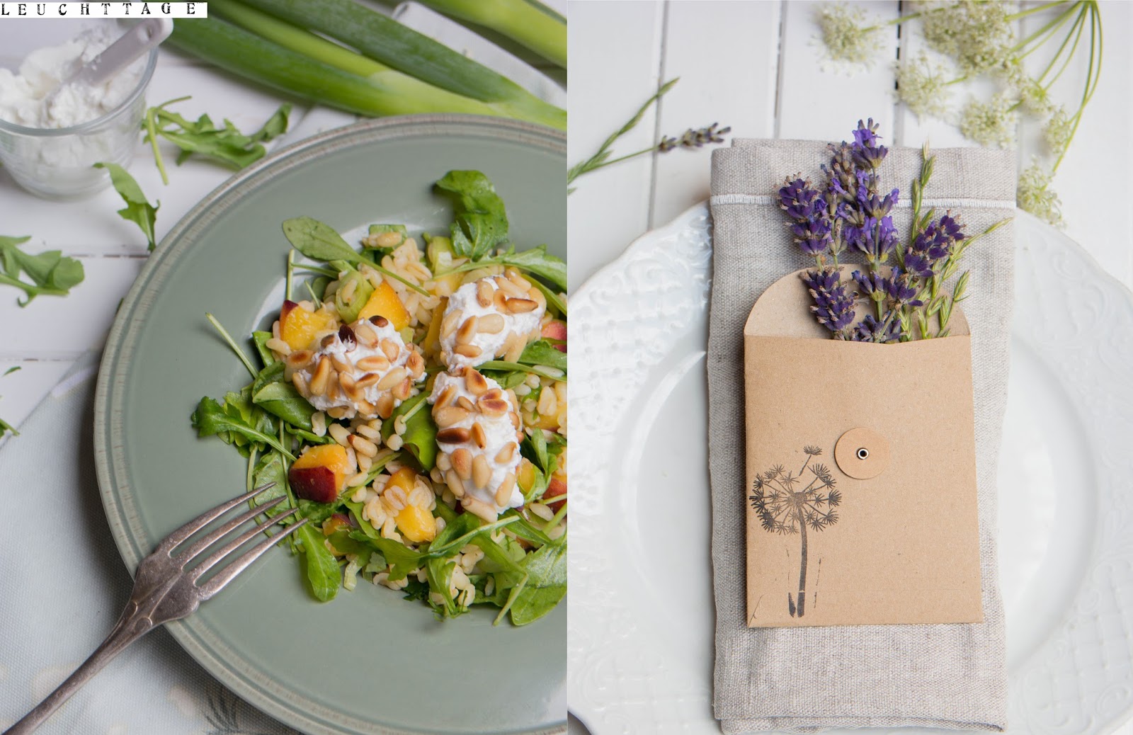 Und da ein gedeckter Tisch ohne passende Essenszugabe ja sinnlos wäre, kommt hier noch ein Knaller-Rezept für einen gesunden Sommersalat mit Ziegenkäse- lasst es euch schmecken !!