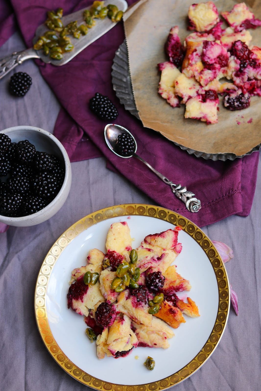 Wunderhübsch verpackt in Brombeer-Kaiserschmarren mit weißer Schokolade und Pistazienkaramell- wir verstehen uns !