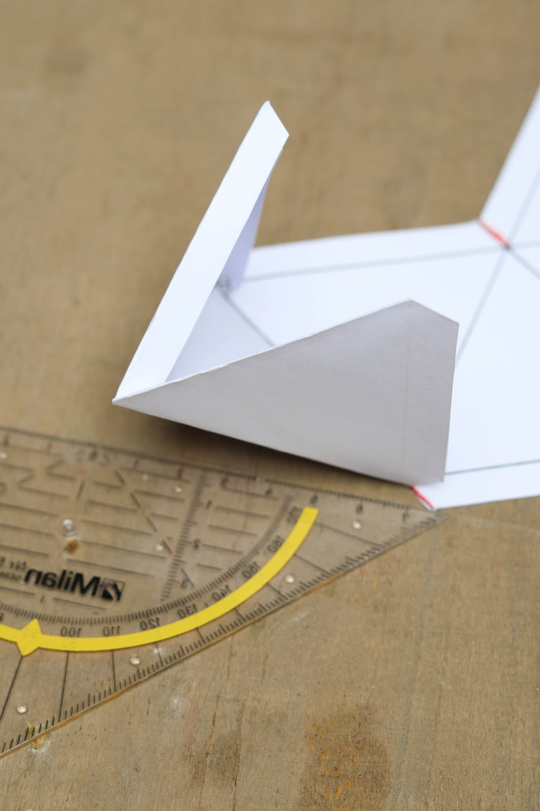 An den rot markierten Stellen einen Schnitt bis zur Kante der Dreiecke machen ( hier werden die Kanten später verklebt)