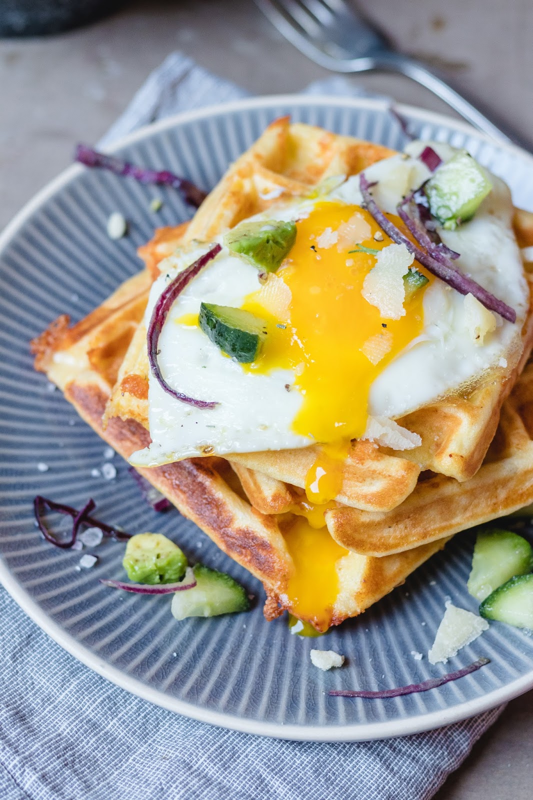 Die Tage habe ich zudem das erste Mal herzhafte Waffeln gemacht. Die standen schon sooo lange auf meiner Kochliste und endlich habe ich es geschafft, sie zu kochen.