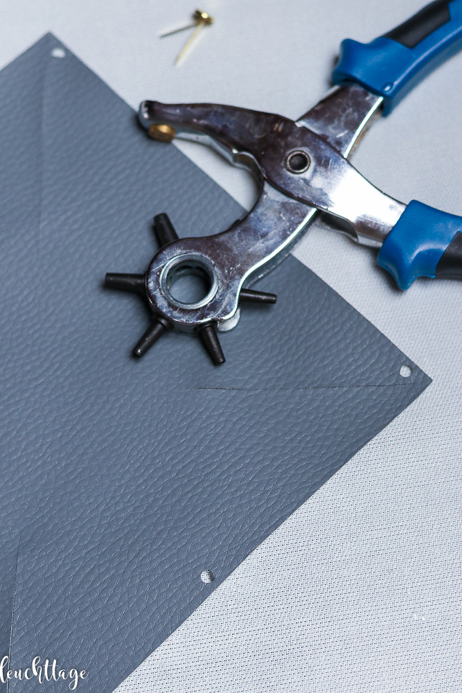 Die Mitte der nicht gelochten Seiten markieren und knapp über der Markierung ebenfalls auf beiden Seiten ein Loch mit der Lochzange ausstanzen.