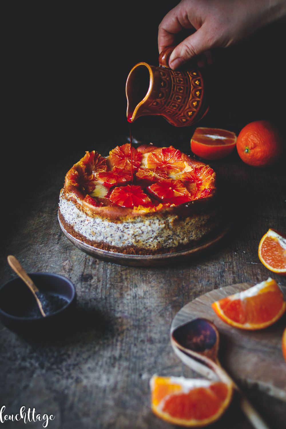Also habe ich ganz tief in der Trickkiste gegraben und euch einen Käsekuchen mit Mohn und Blutorangen kredenzt. Ich meine, alleine die Farbe der Orangen ist doch wie eine Sinfonie für die Sinne, nicht?