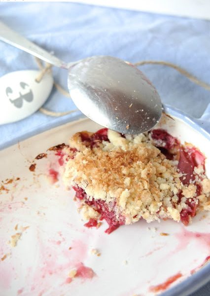 Sommerstimmung-Himbeer-Nektarinen-Crumble und maritime Geschenkverpackungen